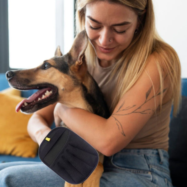 „Perfekt für die Fellpflege meiner Hunde! Der Handschuh liegt gut in der Hand und entfernt problemlos Haare – auch bei langen Fellarten!“